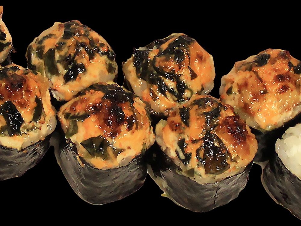 Вакаме, омлет, сыр, огурец, угорь, сырный соус