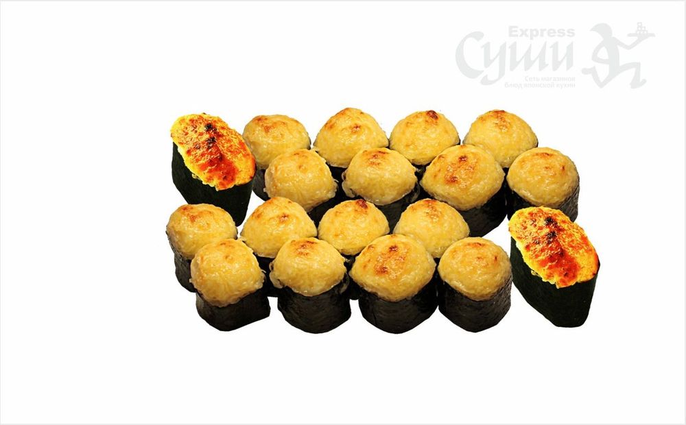Запеченный мини ролл с лососем, запеченный мини ролл с крабом, запеченные суши с мидиями 2 шт