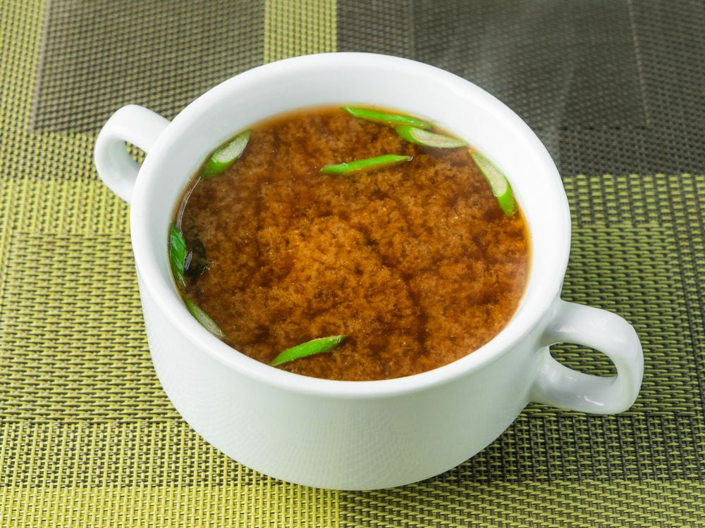Традиционный японский суп из соевой пасты, водорослей, грибов