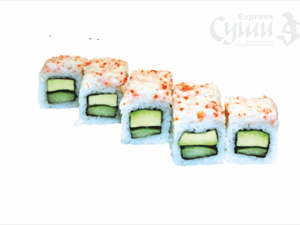Крем-краб, огурец, авокадо, тигровая креветка