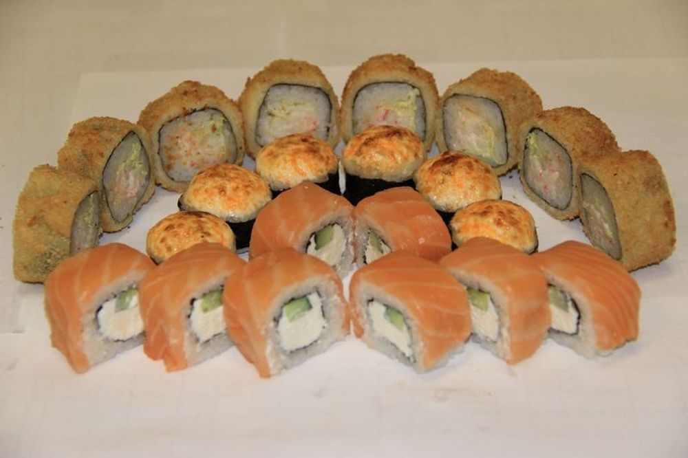 Ролл «Филадельфия», ролл «Кани темпура», запеченный ролл с окунем
